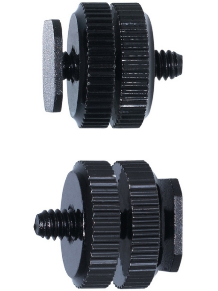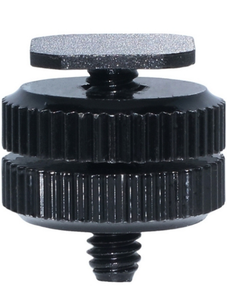 Адаптер переходник для крепления «горячий башмак» с 2 регулируемыми стопорными гайками позволяет надежно закрепить любое устройство оснащенное резьбой 1/4". Например светодиодную лампу, монитор, накамерный свет, микрофон, радиосистема или иное другое устройства с такой штативной резьбой.