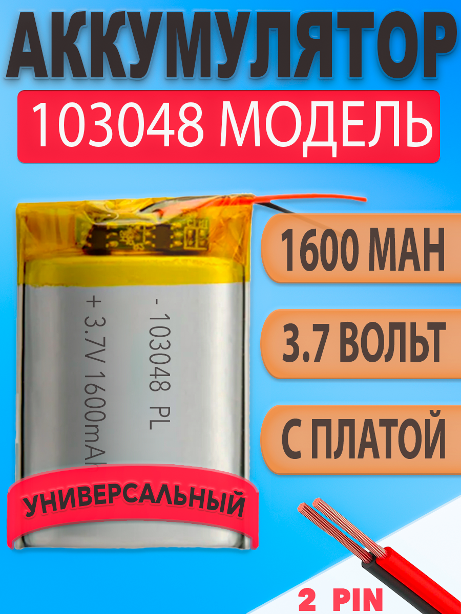 Аккумулятор (батарея) 103048 1600mAh 3,7v (48х30х10 мм)