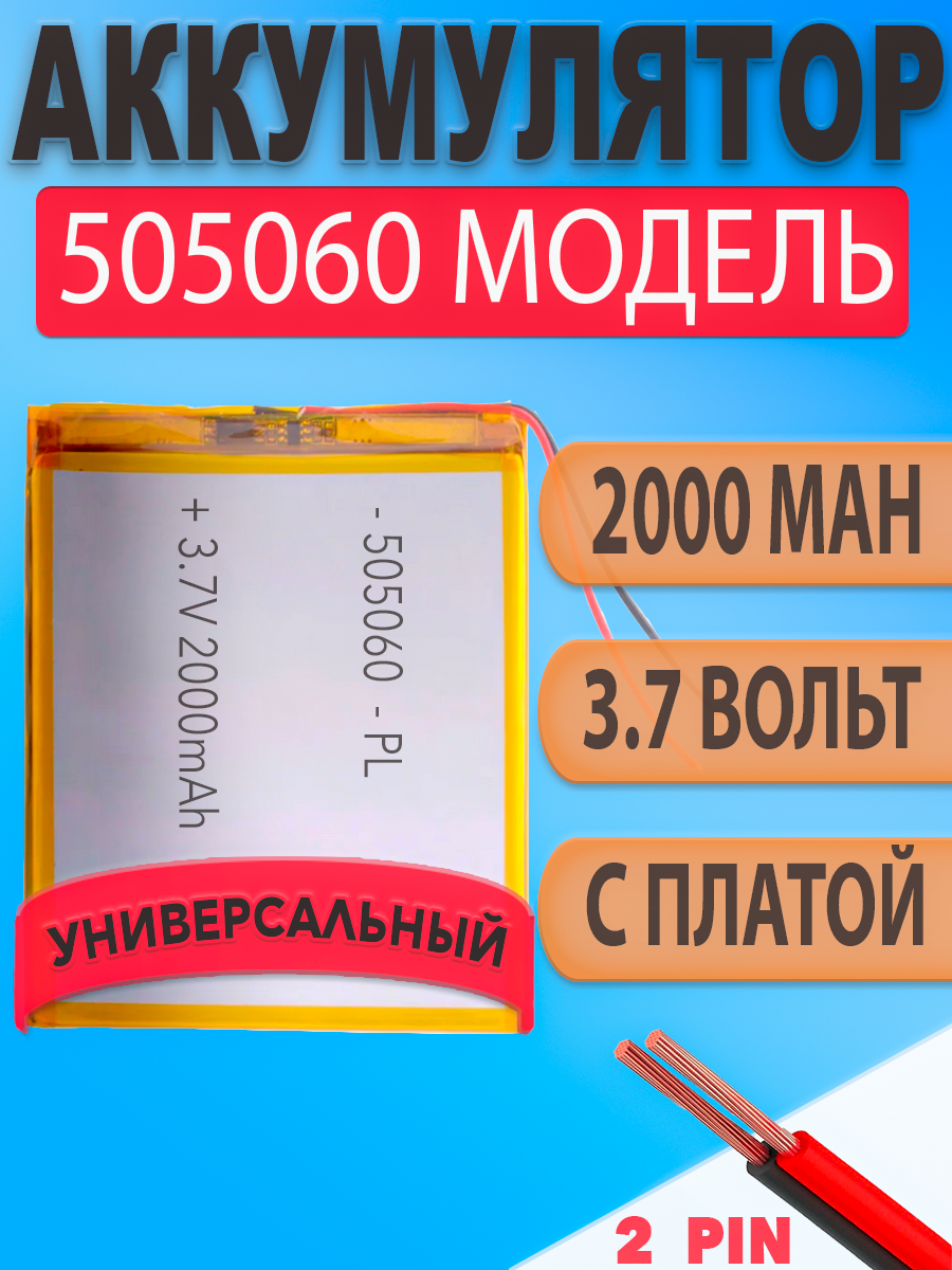 Аккумулятор (батарея) 505060 2000mAh 3,7v (60х50х5 мм)