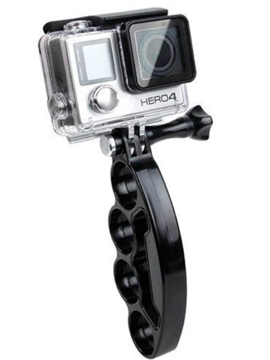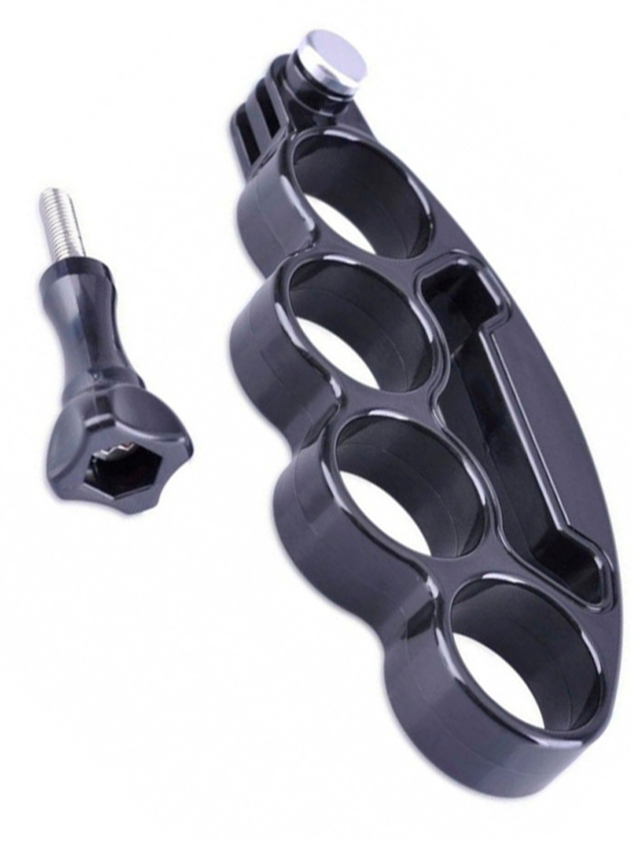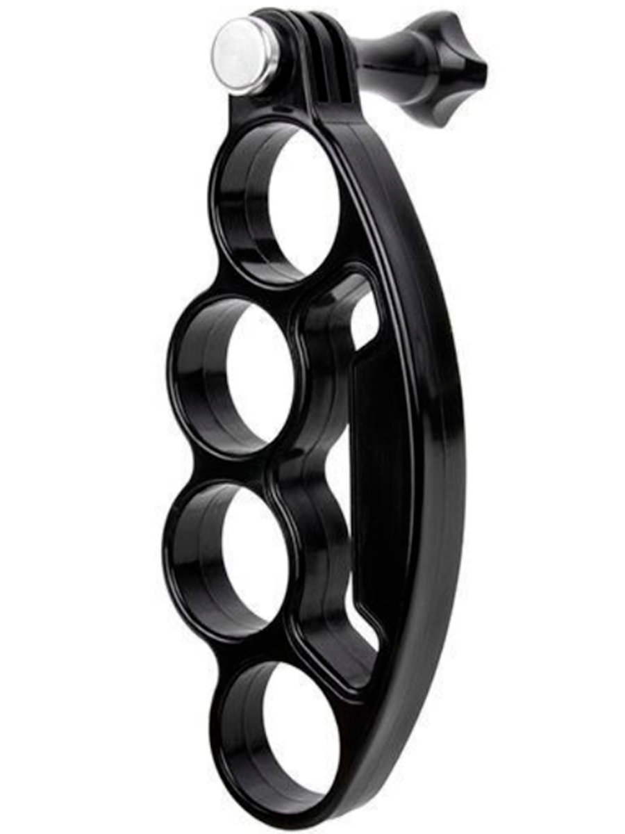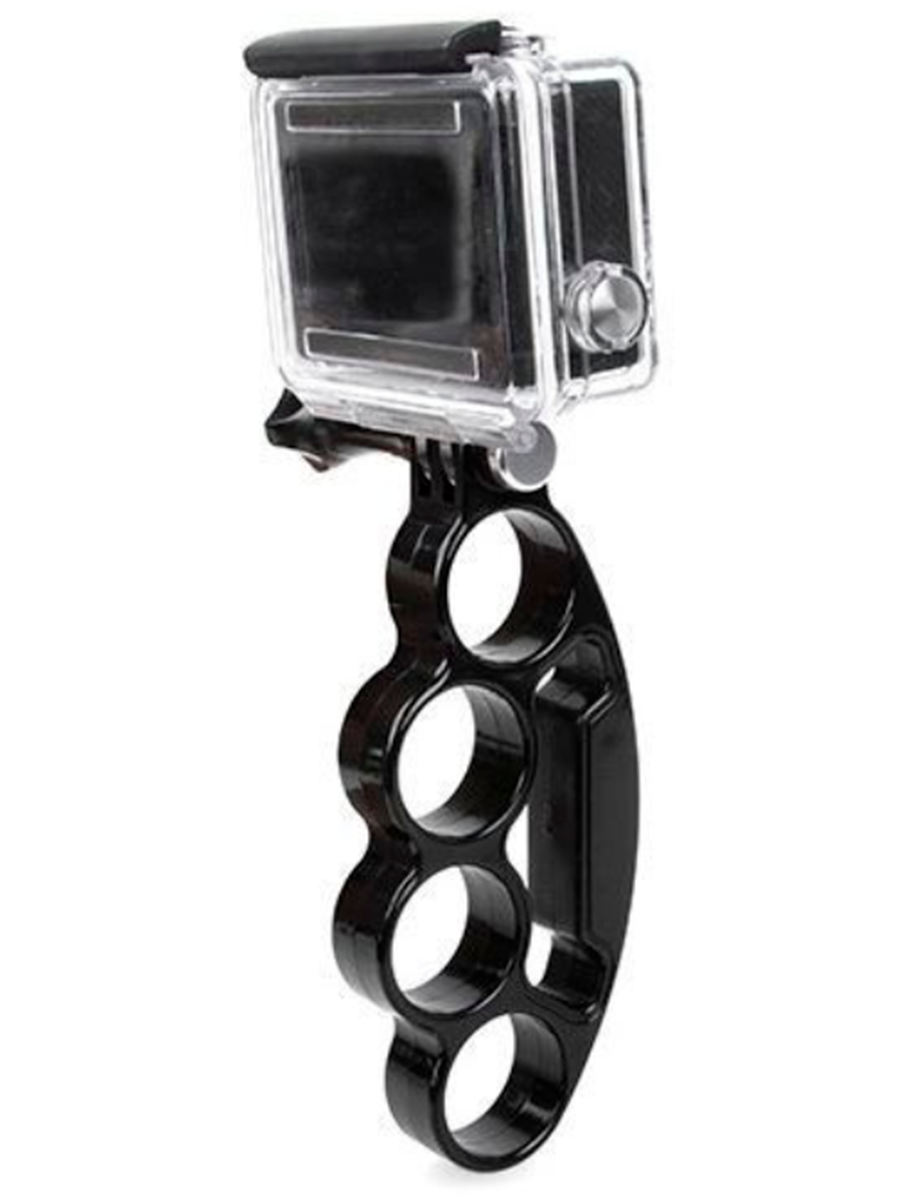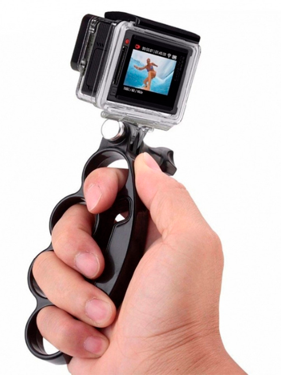 Ручка-кастет для GoPro Уникальный аксессуар для камер. Ручка - кастет для GoPrо - оригинальная находка для неординарных пользователей. Материалом ручки служит легкий, надежный, ударопрочный пластик. А ее длина в 12 см и малый вес - позволяет переносить ручку в компактной сумке, либо в небольшом отсеке портфеля. Форма кастета очень удобна при съёмке «с руки». Держатель, благодаря необычной форме, точно не выскользнет с ладони. Забавный аксессуар стабилизирует изображение. И пальцы точно не попадут в кадр. Интересное крепление для камер подойдет для подвижных пользователей и любителей экстремальных трюков. Запоминающаяся модель не оставляет равнодушными окружающих и производит неизгладимое впечатление.