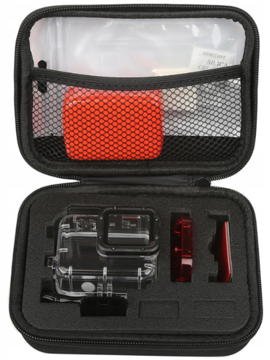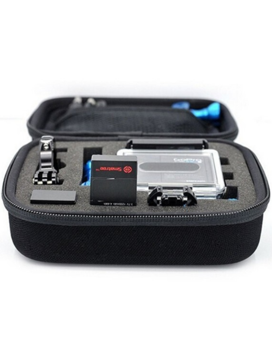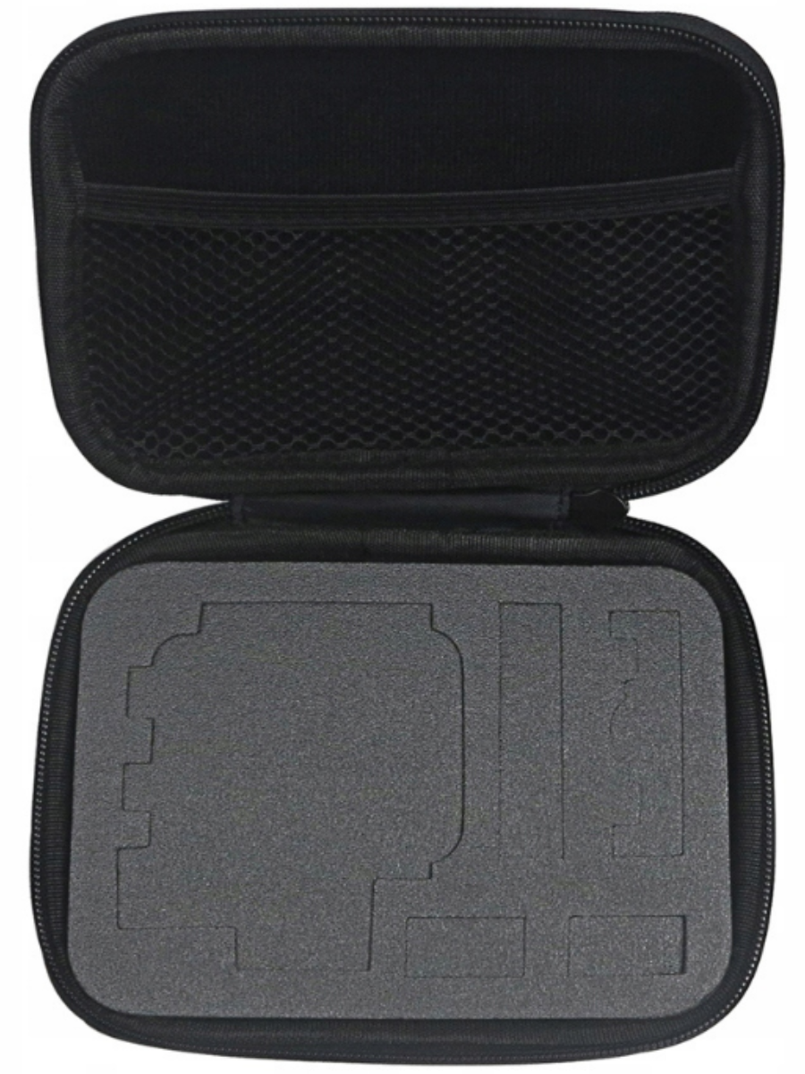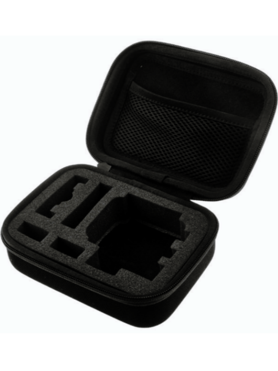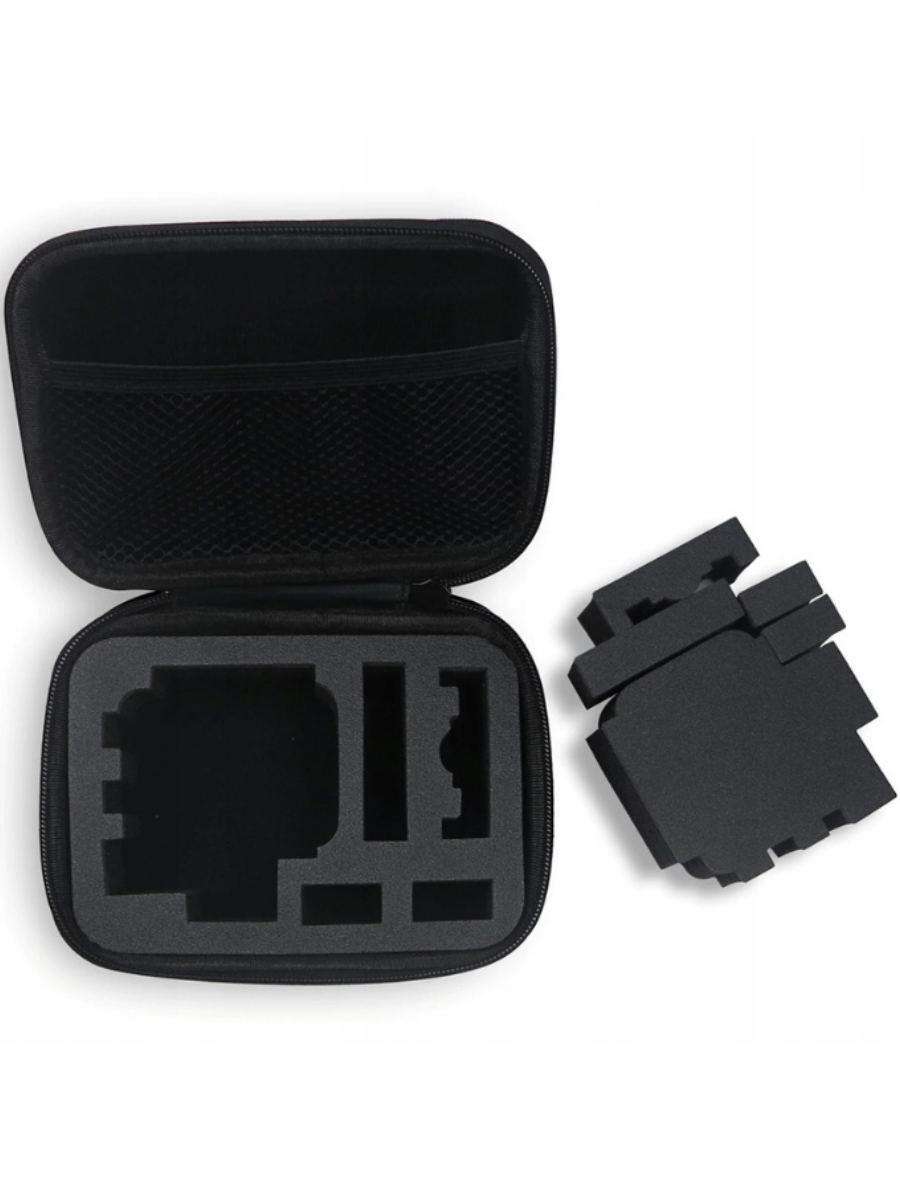Кейс для хранения и транспортировки экшн-камеры и аксессуаров. Лёгкий, удобный и очень прочный. Снаружи прочный виниловый материал, который отталкивает влагу и легко моется. Поверхность рельефная, хорошо противостоит царапинами и ударам.Внутри мягкий поролон, который можно вынимать полностью или частями.
